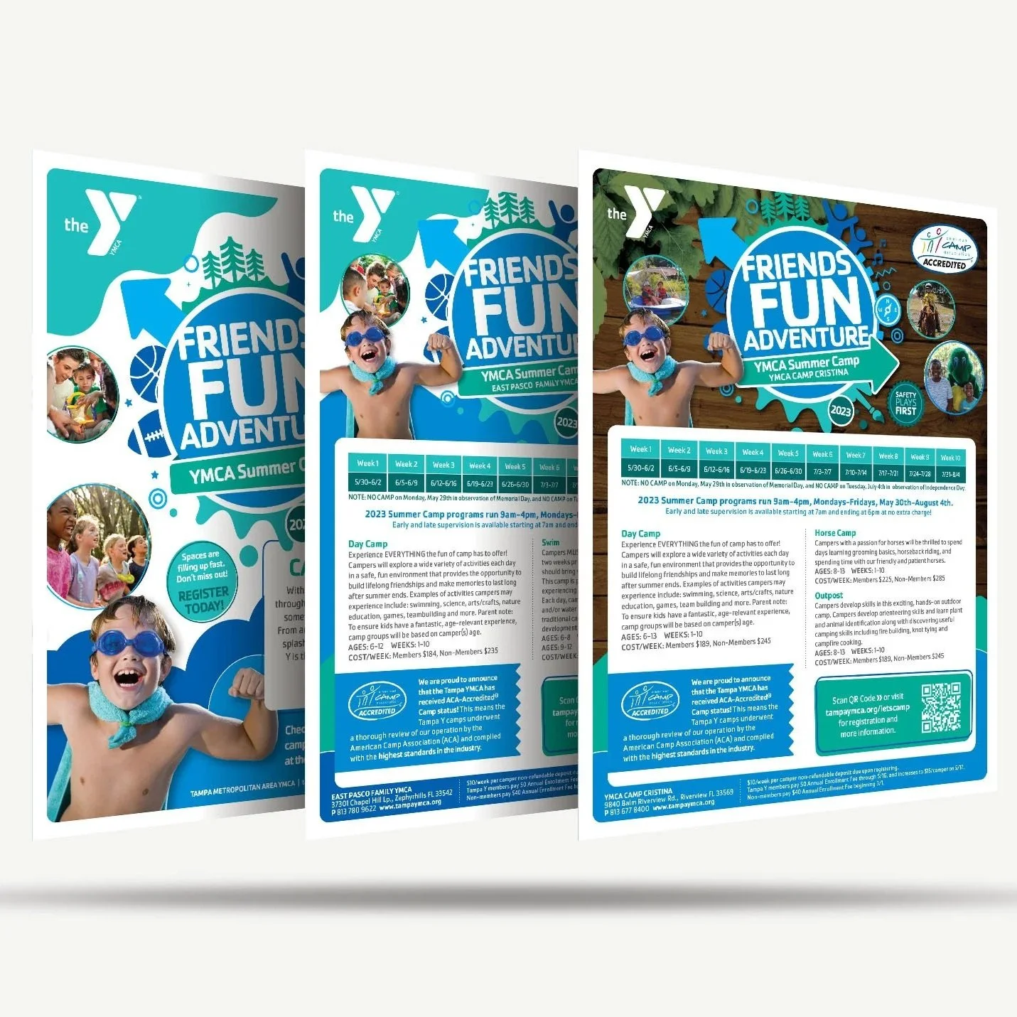 The art direction for our summer camp creative focused on balancing energy, inclusivity, and adaptability. In 2023, we developed a playful, flexible logo system designed to reflect the wide range of camp activities, and this creative approach was carried through for several years across various touchpoints. In 2026, I guided a rebrand that drew from the Y-USA national campaign, translating its more modern, structured aesthetic into something that still captured the carefree, vibrant spirit of summer camp. The result was a refreshed visual language that felt both contemporary and authentically fun, resonating with families while staying true to the camp experience.